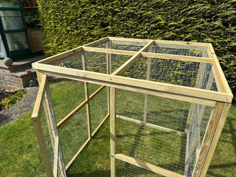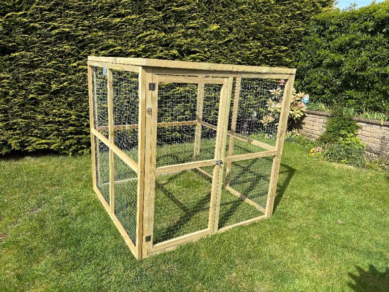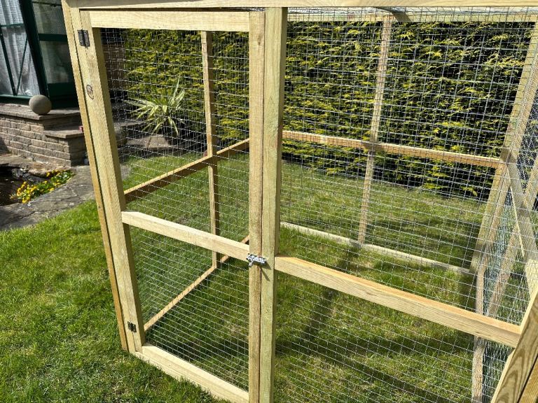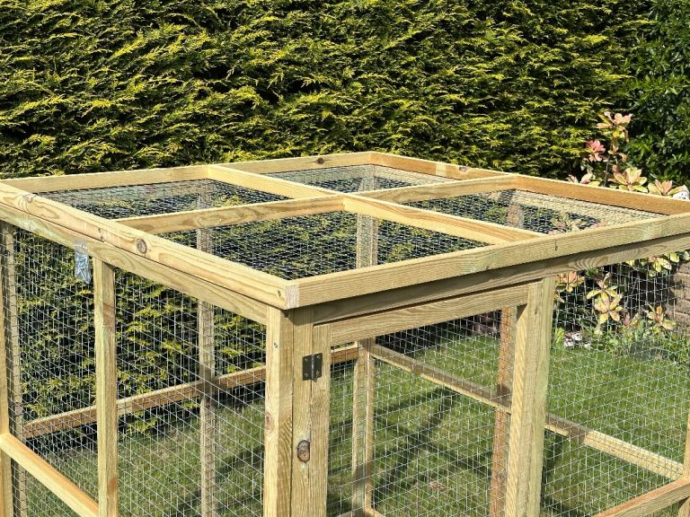 It is made from exterior tanalised timber with 1” square galvanised mesh with a strong but lightweight design.