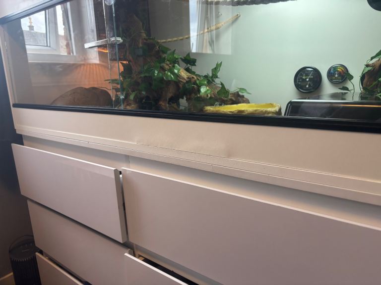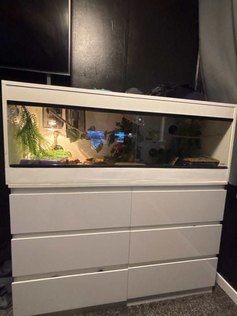 4 foot White wooden vivarium. All equipment included, Ceramic heat emitter in a heat guard cage, UVA heat bulb in a heat guard cage.