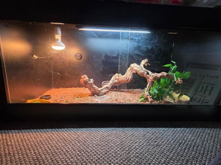 Brand new large black enclosure with heat light and UV light all brand new. Just brought for Xmas. Can't take on due to personal loss.
