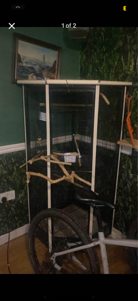 Has been used for about a week at max doesn’t come with any perches or anything just the cage it’s self