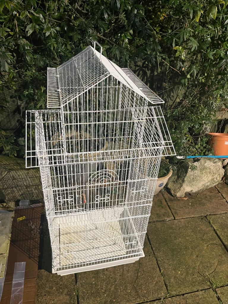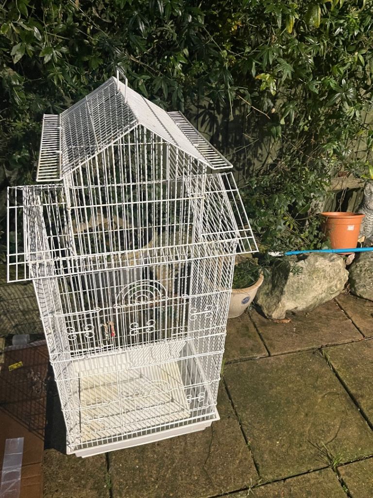 Bird cage. white used bird cage. Easy cleaning with pull out tray. The bigger the cage the happier your feather friends. With large door.