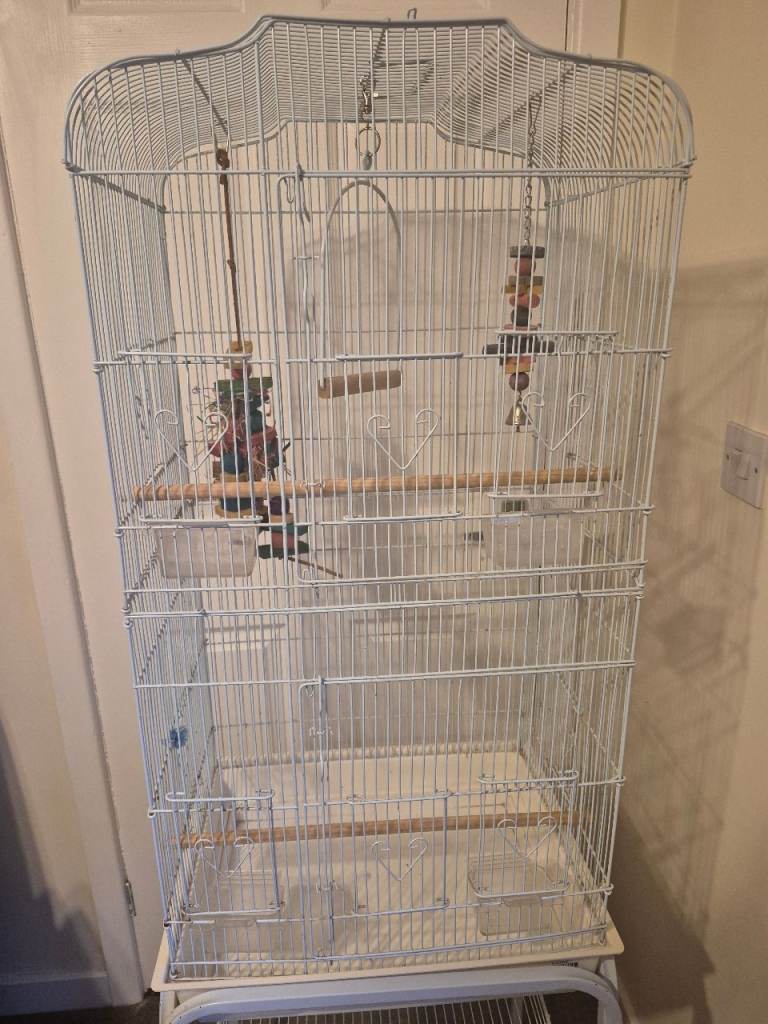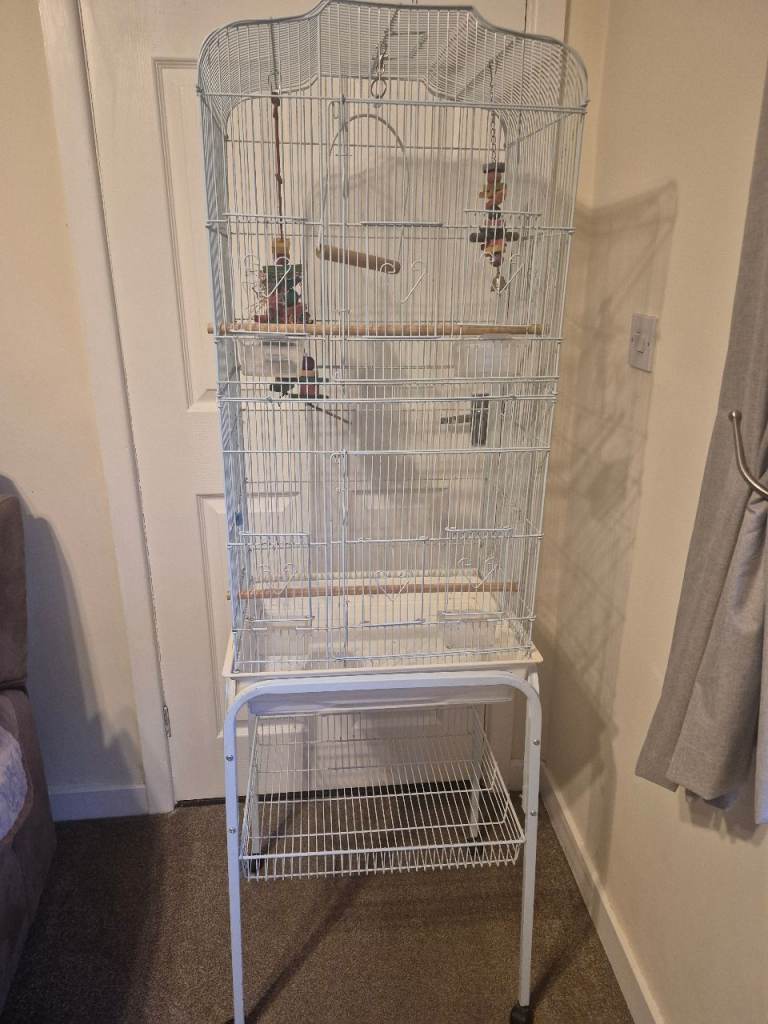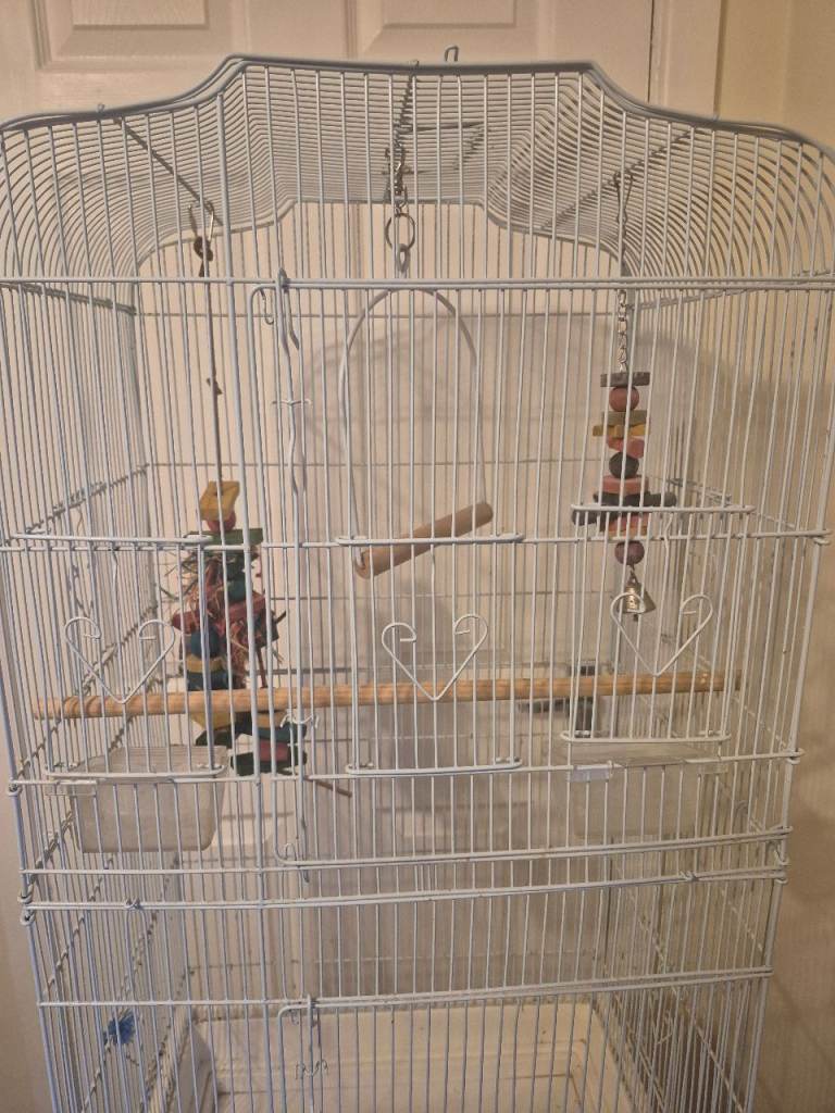 Posting for 9+ yearsBird cage &stand with perches & hanging toys