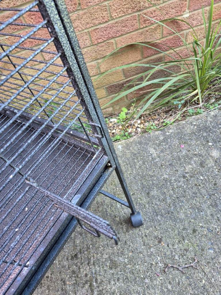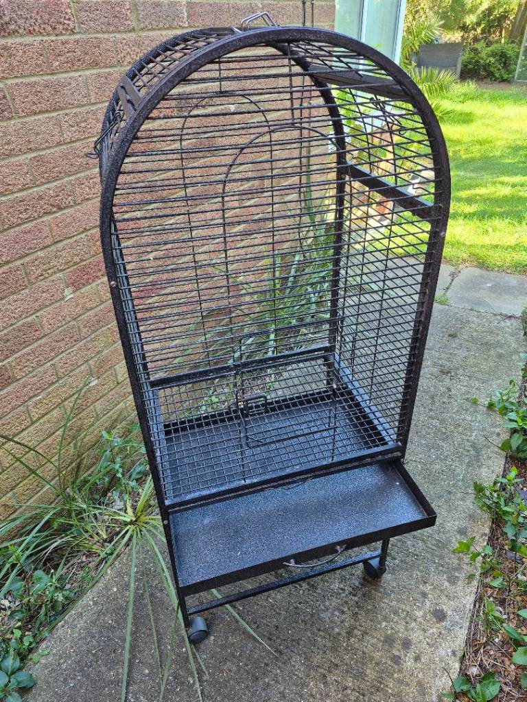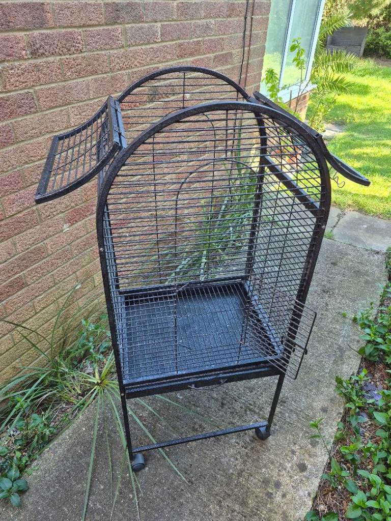 Very good condition bird cage. Front opening. Side openings for easy access to food bowls etc. Top opens completely and then closes into place. Removable tray for easy cleaning.