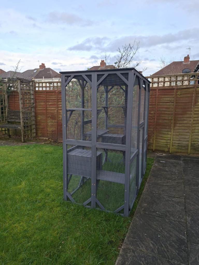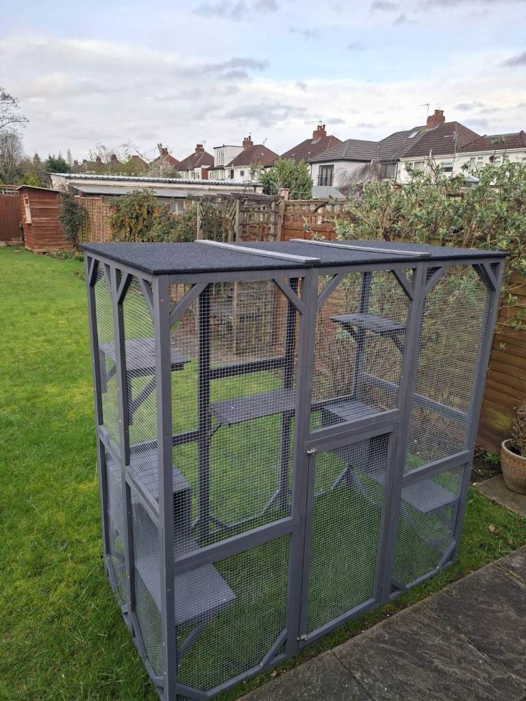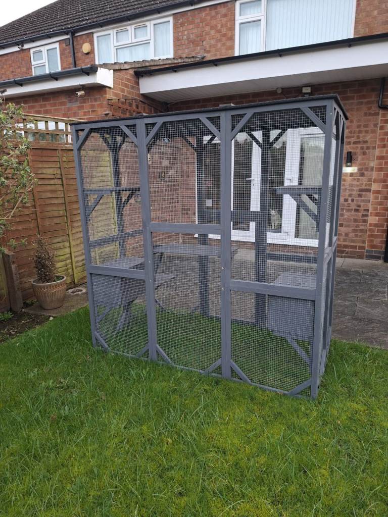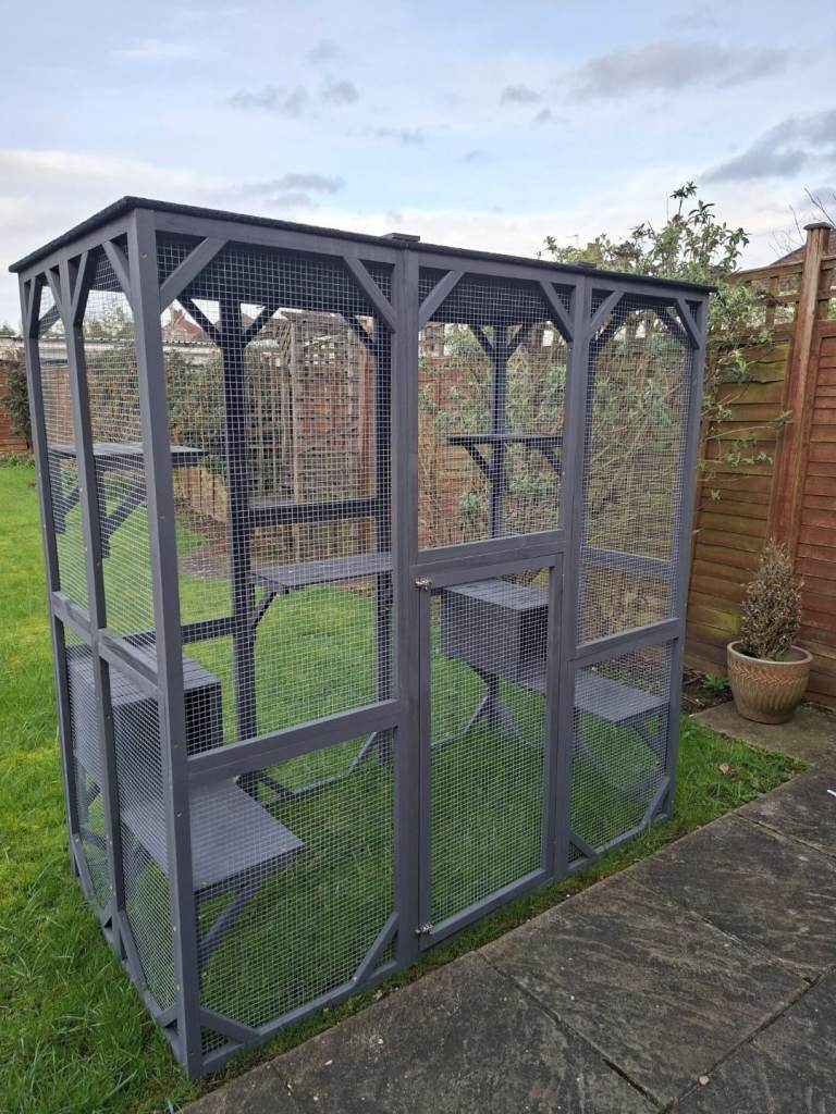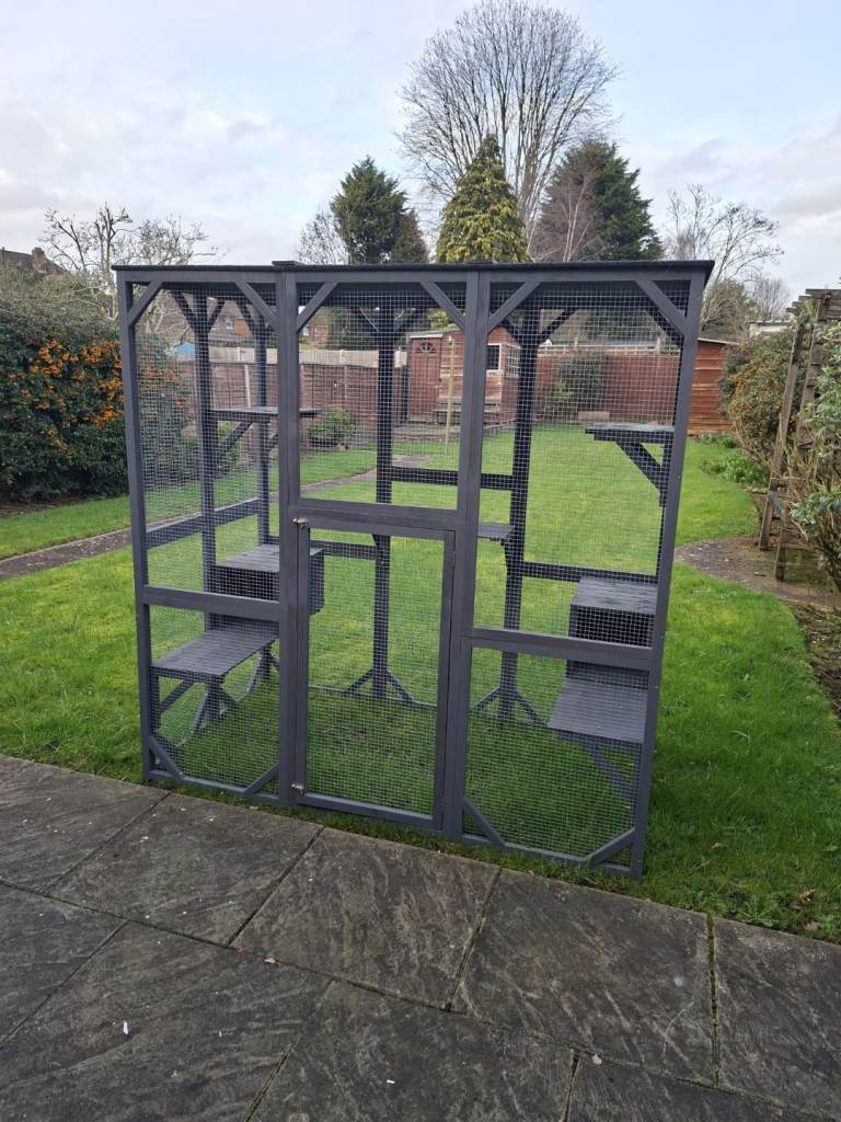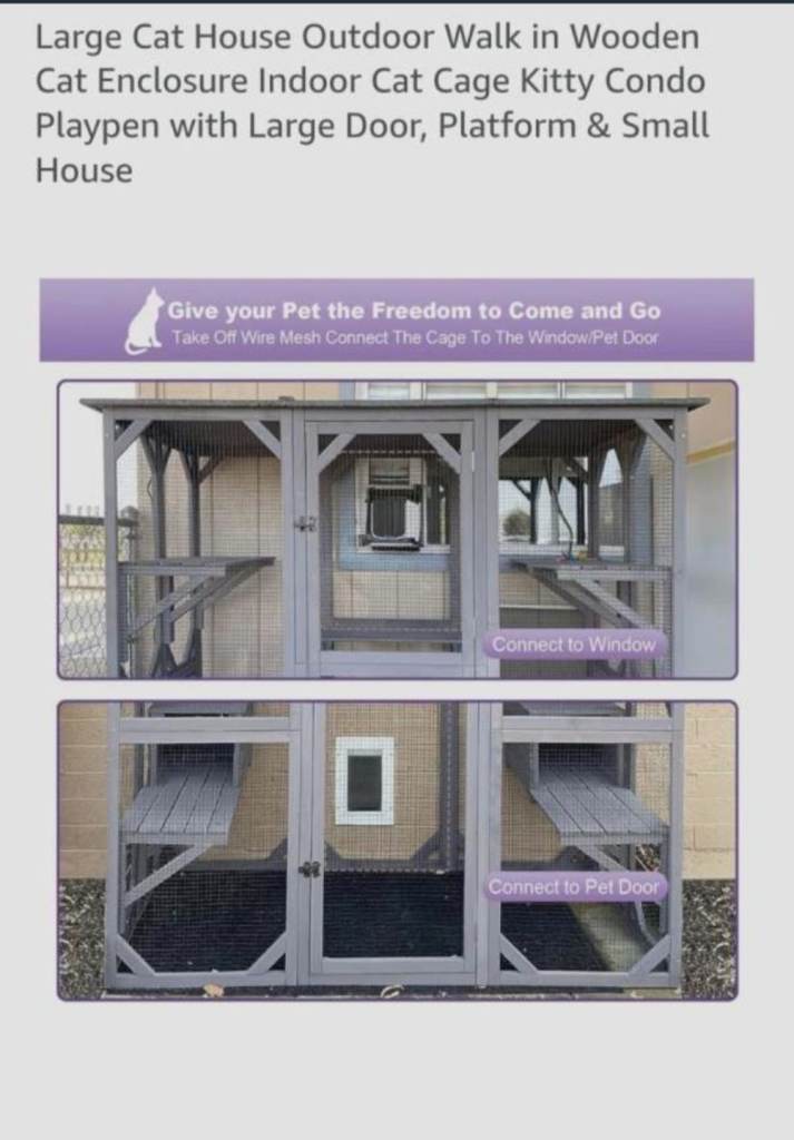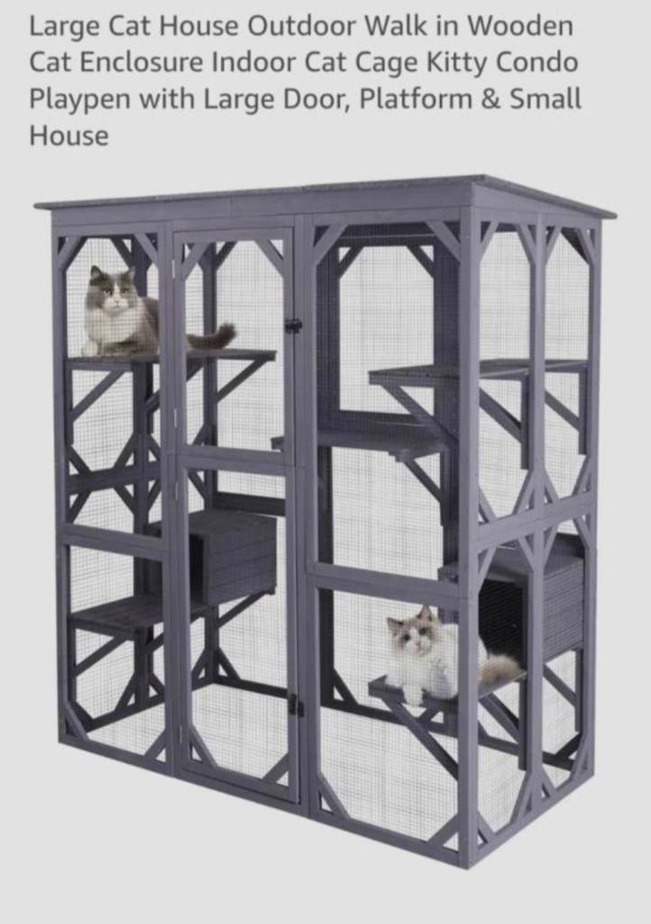2-in-1 Walk-in Multi-Level Outdoor Catio Wooden Enclosure with 6 Jumping Platforms & 2 Resting Box, Large Cat House Outdoor,Resting Room Condo, Accommodate Up to 5-7 Cats.