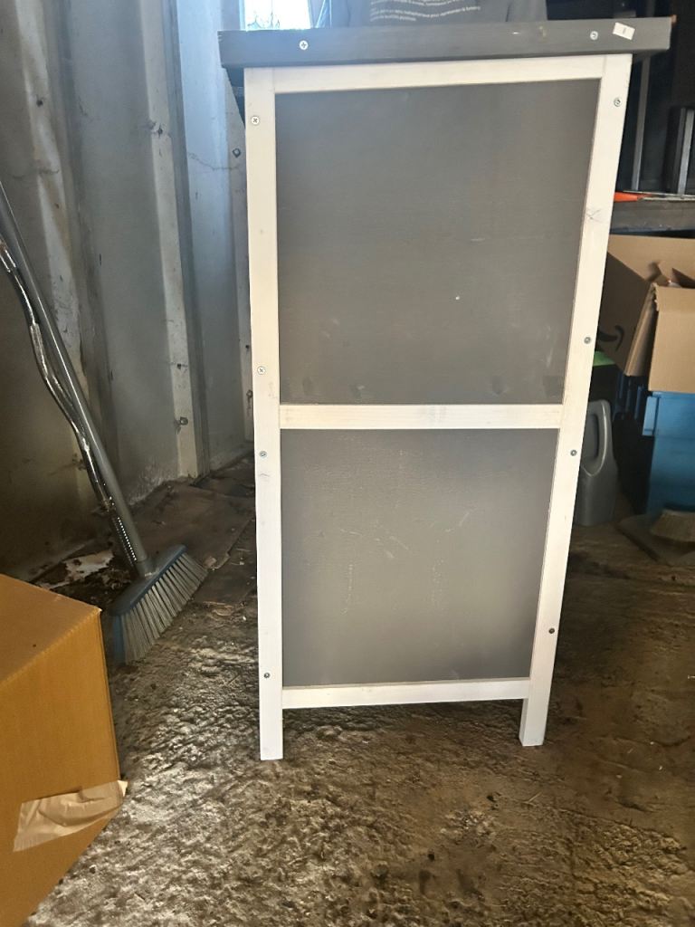Bought for £90 and build it then binned the box before realising that it was far too small for my two medium sized rabbits. Looking for £80 Ono. Pick up build or I can take it apart and give you the instructions to rebuild. There are sliding features for the bases on both levels which come out for easy cleaning and the bases are aluminium. There are 2 doors and the top also lifts up.