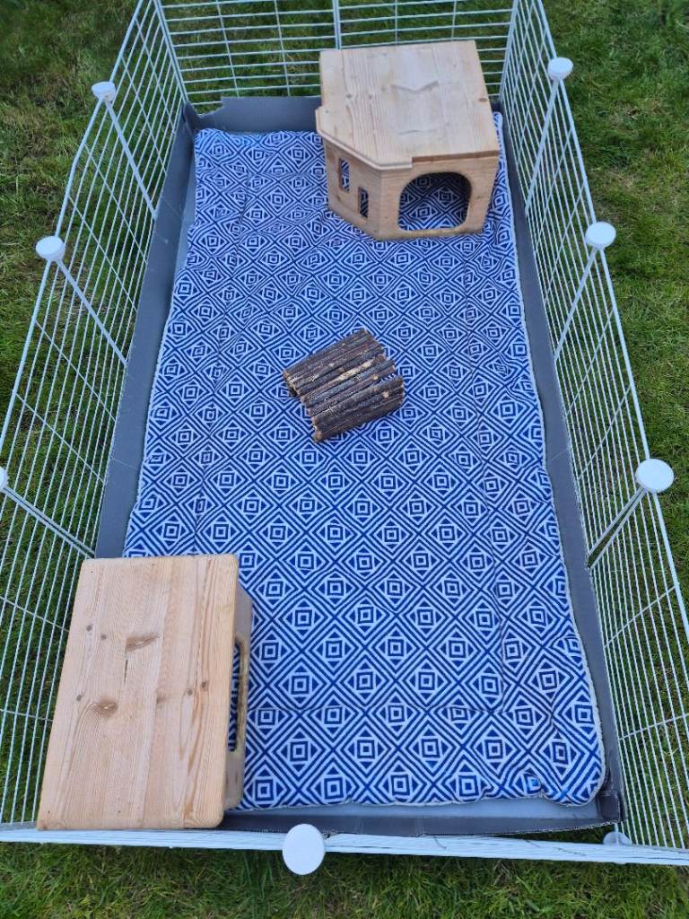 Posting for 17+ yearsC and C guineapig cage 2x4, 2 x kavee guinea pig mats, 2 x wooden shelters