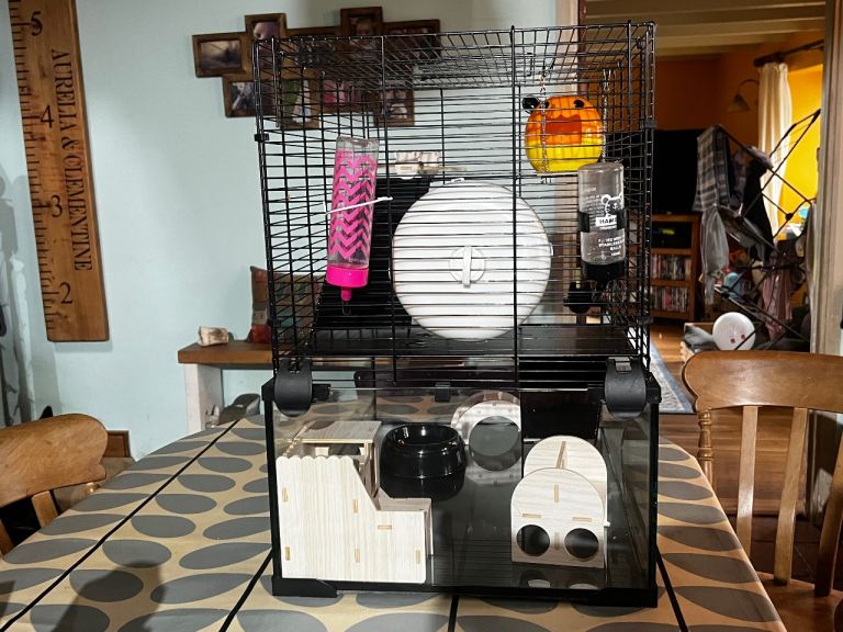 The cage has been thoroughly cleaned and is ready to go. A great starter kit for a first pet.