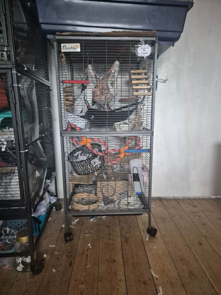 2 cages for sale,both used for rats,just upgraded to bigger cages. Smaller one is 52x52x100cm height with wheels is 113cm,bigger cage is only 2 weeks old 79x52x117cm height with wheels 137cm. Am asking £20 for smaller cage and £40 for bigger cage. This is for cages only. Both dismantled for easy transportation. Collection from WV6 7AF. Please no timewasters,thankyou