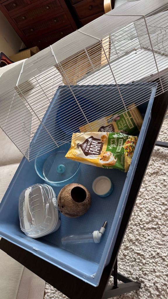 Posting for under a monthComplete Hamster Setup β Cage (Pets at Home Habitat 2) + Wheels, Carrier, Accessories, Feed, Sand