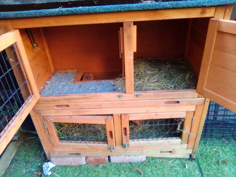 Cage size is 3 ft long x 23” wide x 26” high has 2 doors and steel tray used only a few times like new