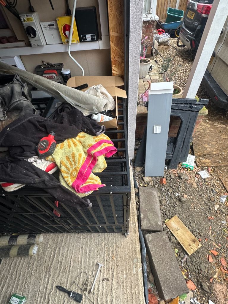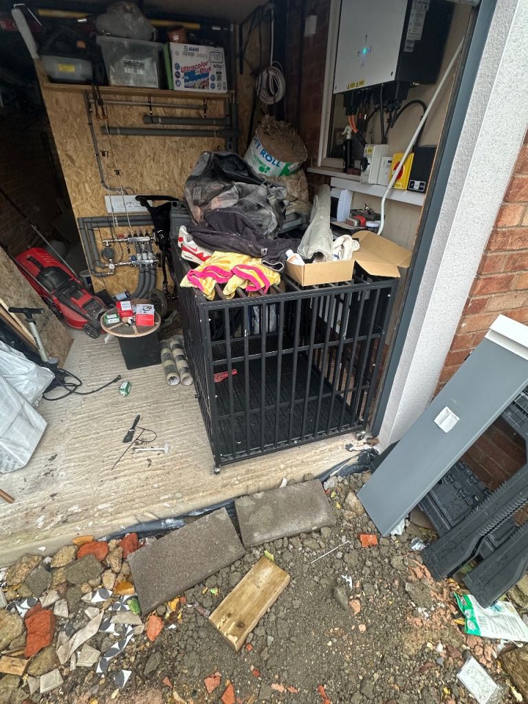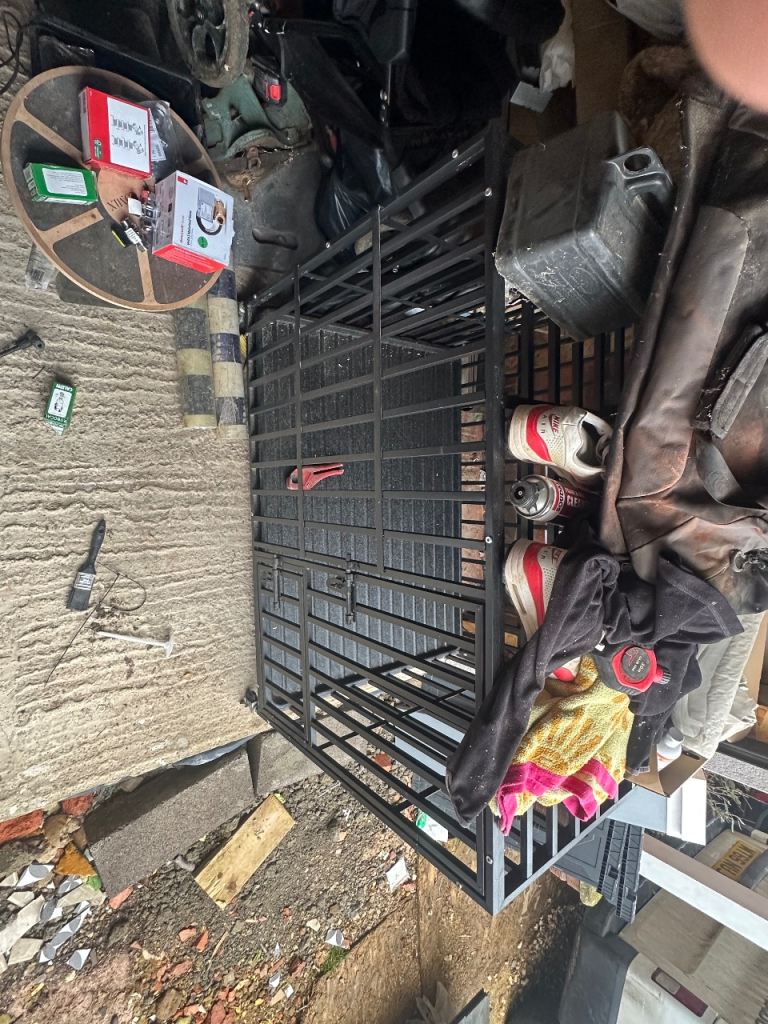 Large dog crate very secure and well built. No longer needed.
