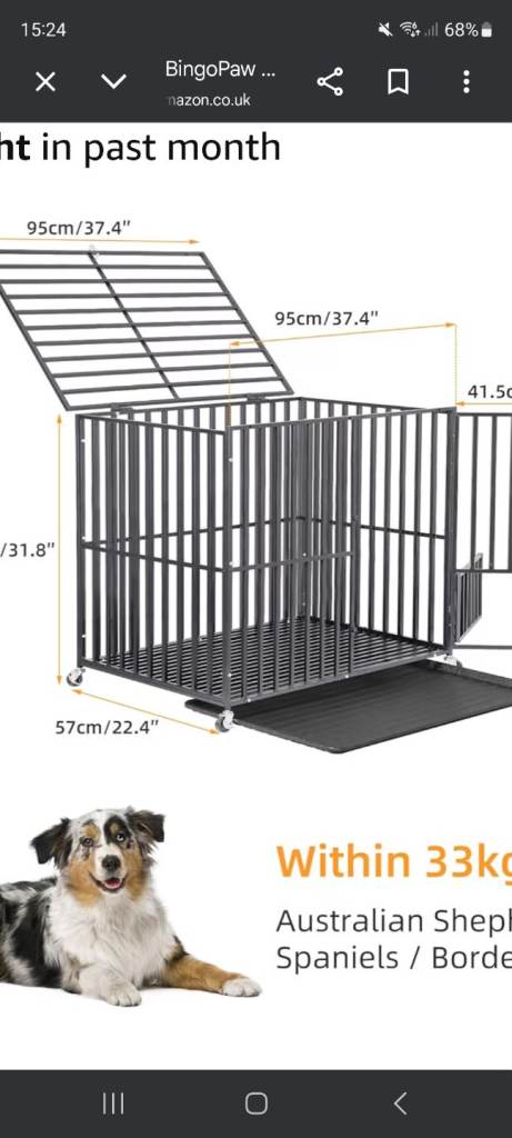 I have got this dog cage brand new never been used its to small for my dog just want my money back for what I paid £150 or ono it says It was a xl but I think it's a small xl got everything with it it's all in the box pick up only as can't drive
