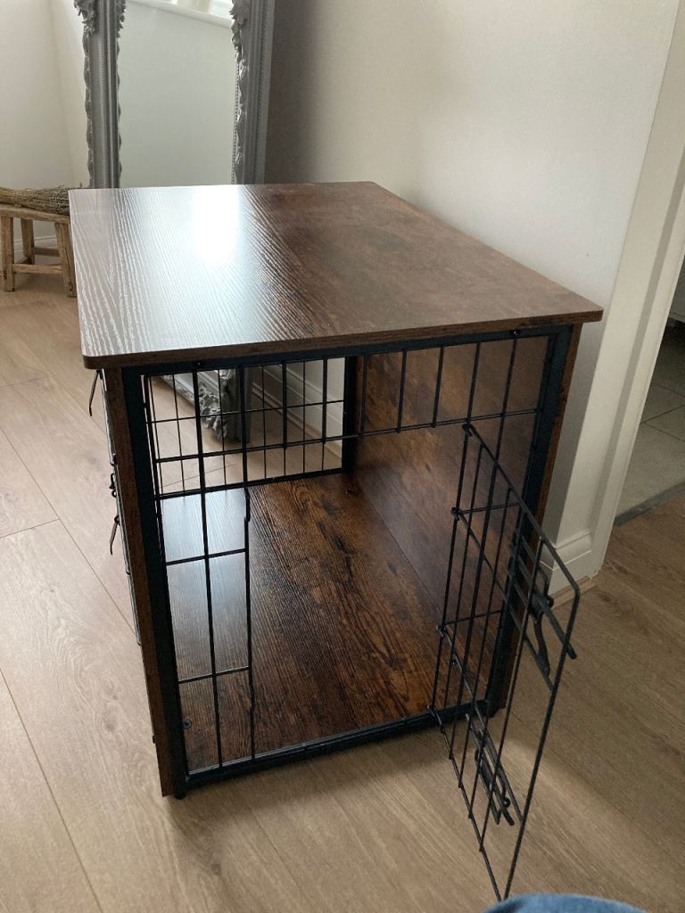 Dog cage in dark wood immaculate condition less than 6 months old.