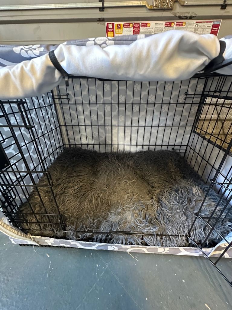 Posting for 3+ yearsDog crate, bed + crate cover MEDIUM