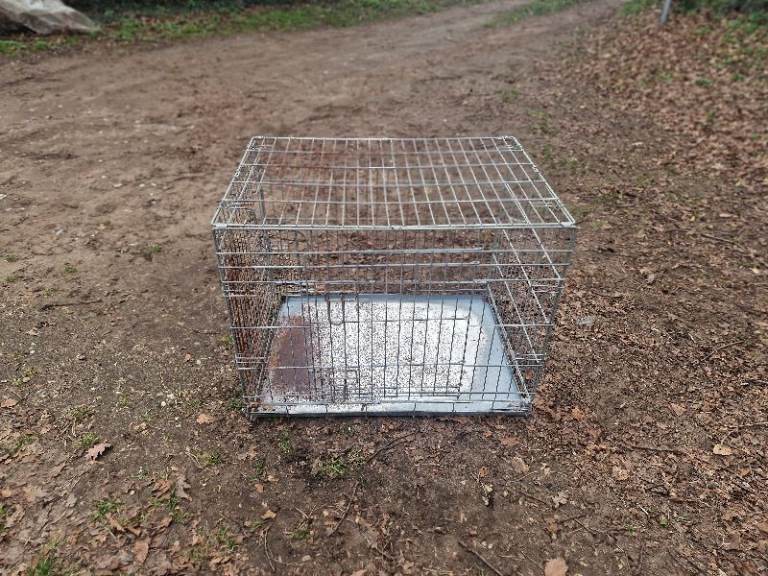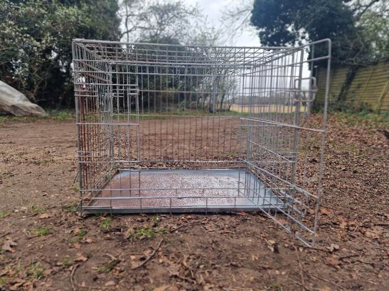 A medium sized dog crate