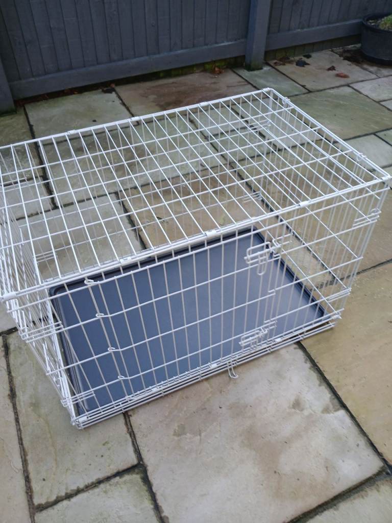 3ft long 2ft wide 2ft high approx, dog crate/ cage, 1 end door and side door also. Easy up and down.