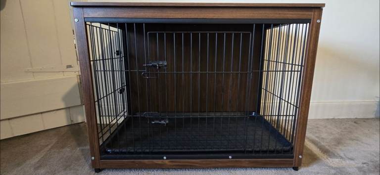 Dog crate, excellent condition, two doors (front & side), removable inner tray, lovely sturdy piece, was £120 new.