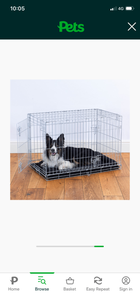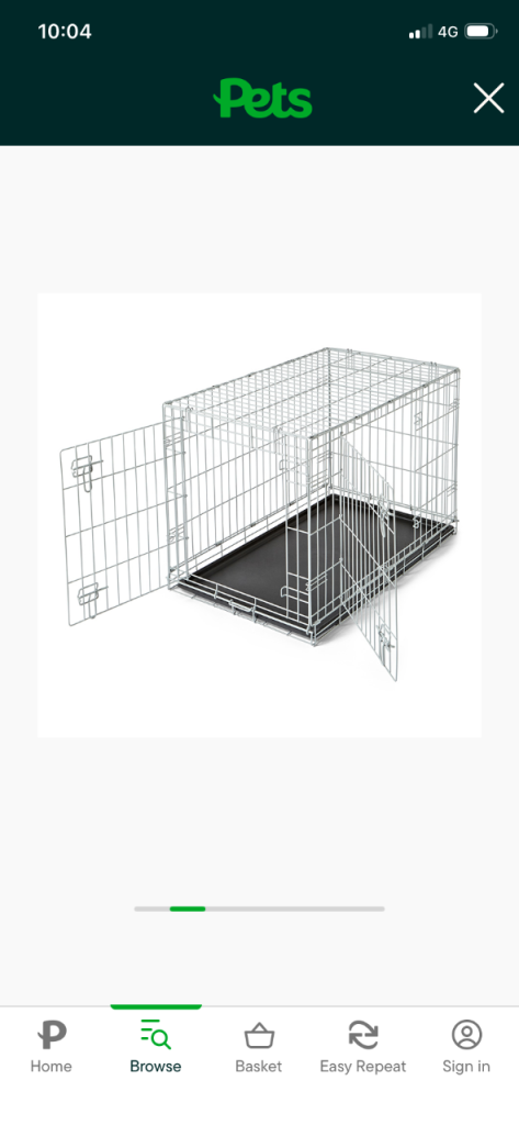 Pets at Home double door easy assemble secure folding dog crate. Used only once.