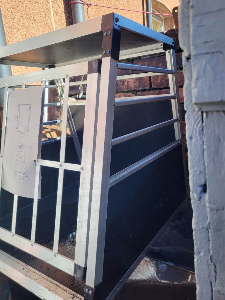 Aluminum dog crate for single medium dog but I have had a large dog in its 12 months old great condition ive put the measurements on the crate door ive changed my car and it won,t fit buying must collect cost too much to post plus I would like you to see it first