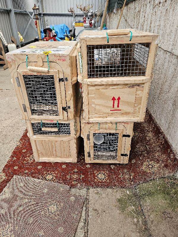 4 dog crates good for transport of dogs or using for dog sports ie shooting hunting etc there's 2 bigger than the other all in great condition used once to transport dogs from abroad 30 for bigger one 20 smaller
