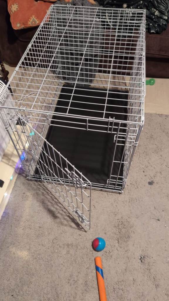 Crate barely used. Box slightly damaged.