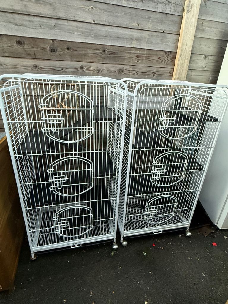 No longer needed. 6 floors on each side. Double cage on wheels. Has trays at the bottom for easy cleaning. The cage separates into two for easy moving. Joins by a tunnel. Can house rats, ferrets etc. open to offers.