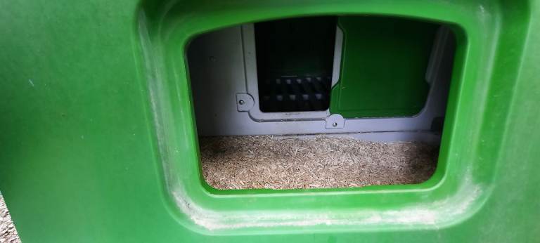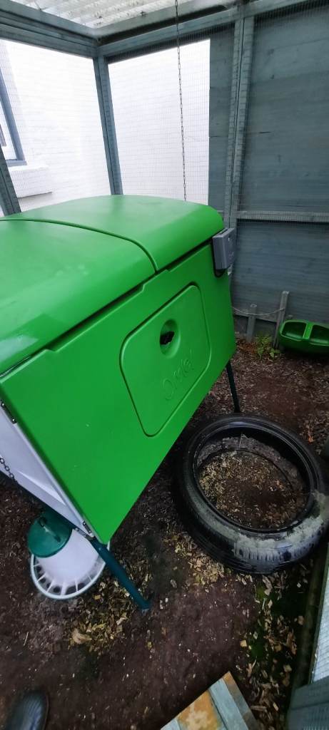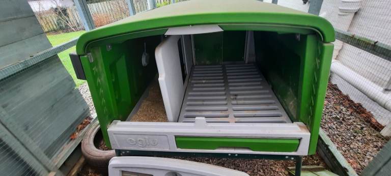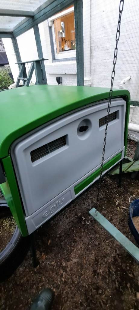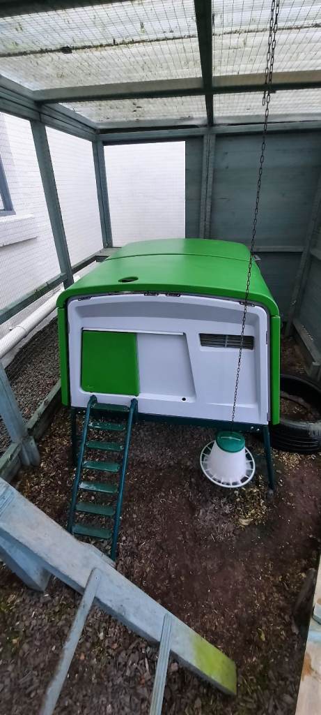 Omlet Eglu Cube Chicken Coop with automatic door and light. Easy to keep clean as made from strong recycled plastic.