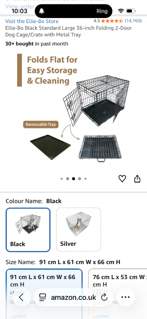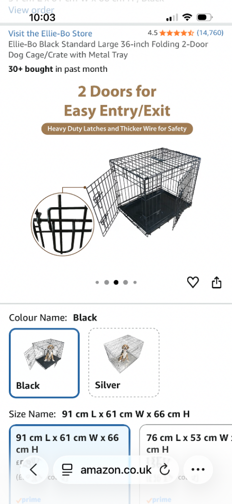 Posting for 14+ yearsEllie-bo Black Standard Large Dog Crate/Cage 36 inch folding 2 door crate With metal tray