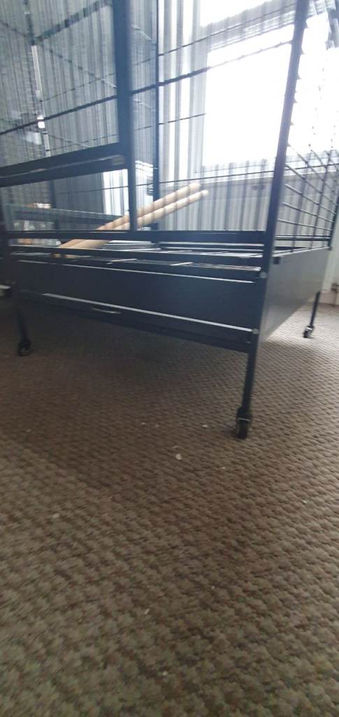 Large bird cage with separatorator in the middle - comes with all splash guards, 4 bowls and 2 wooden perches.