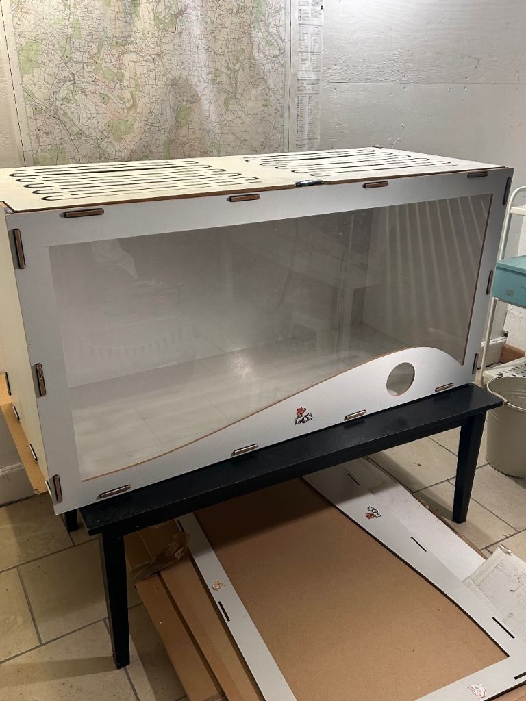 Has been well used and dismantled/put together many times, so will have to be left built now (as there is some signs of wear and the slot pieces have weakened a bit from use), but overall still got plenty of life left in it. Great sized enclosure / would make a wonderful habitat for hamsters, gerbils or mice.