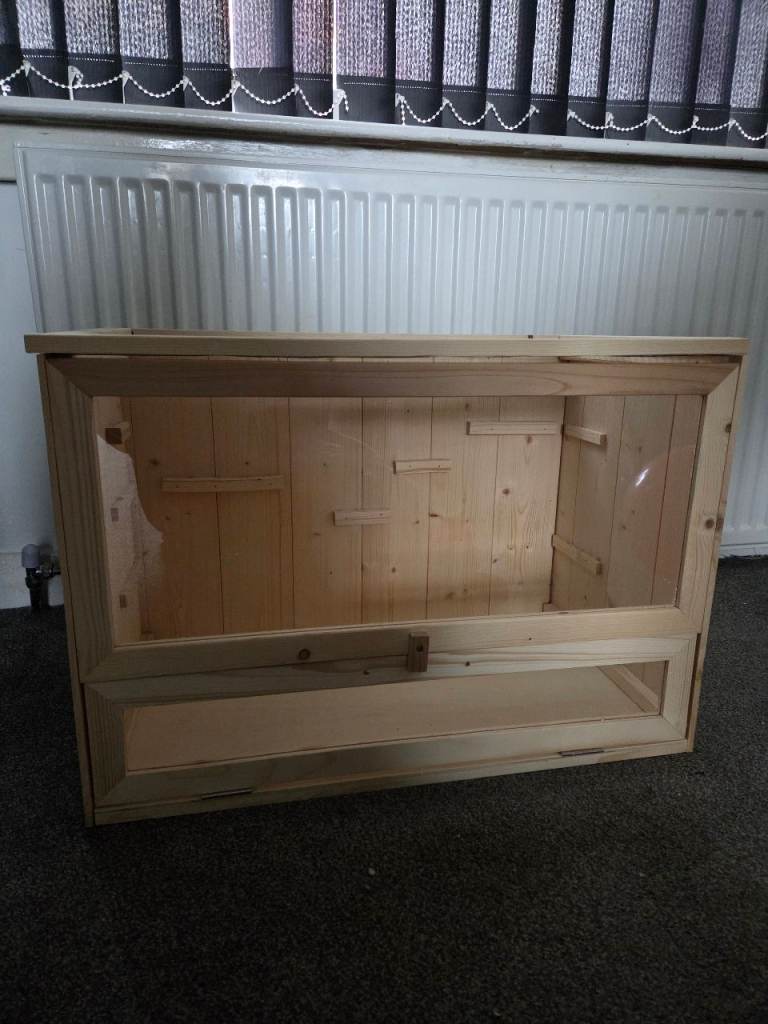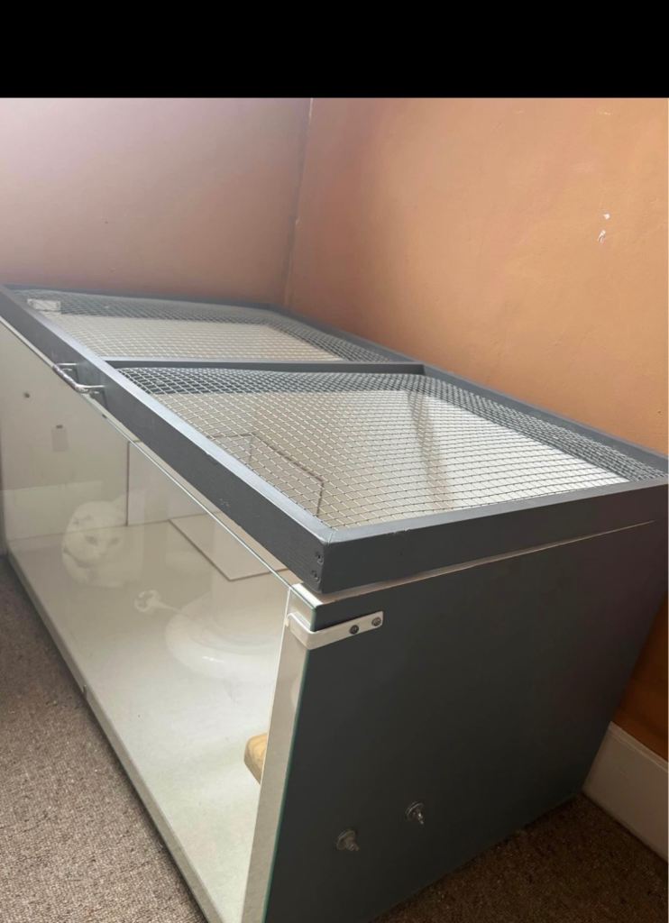 Selling my gerbil cage. It’s a single-level cage with wooden and glass walls, and a thick, sturdy wire top that’s secure but easy to open.