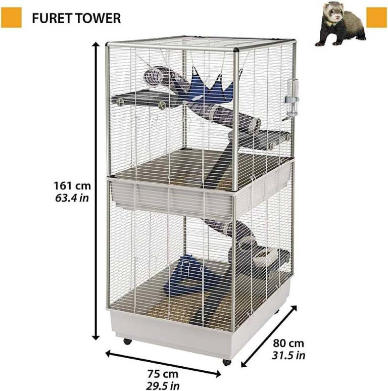 Large ferret cage with a two-storey structure for maximum living comfort, connected with shelves and tubes. This cage is currently £ 398 on amazon