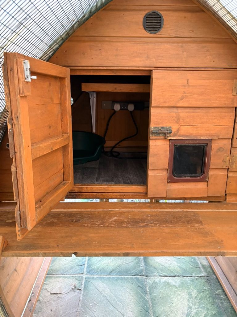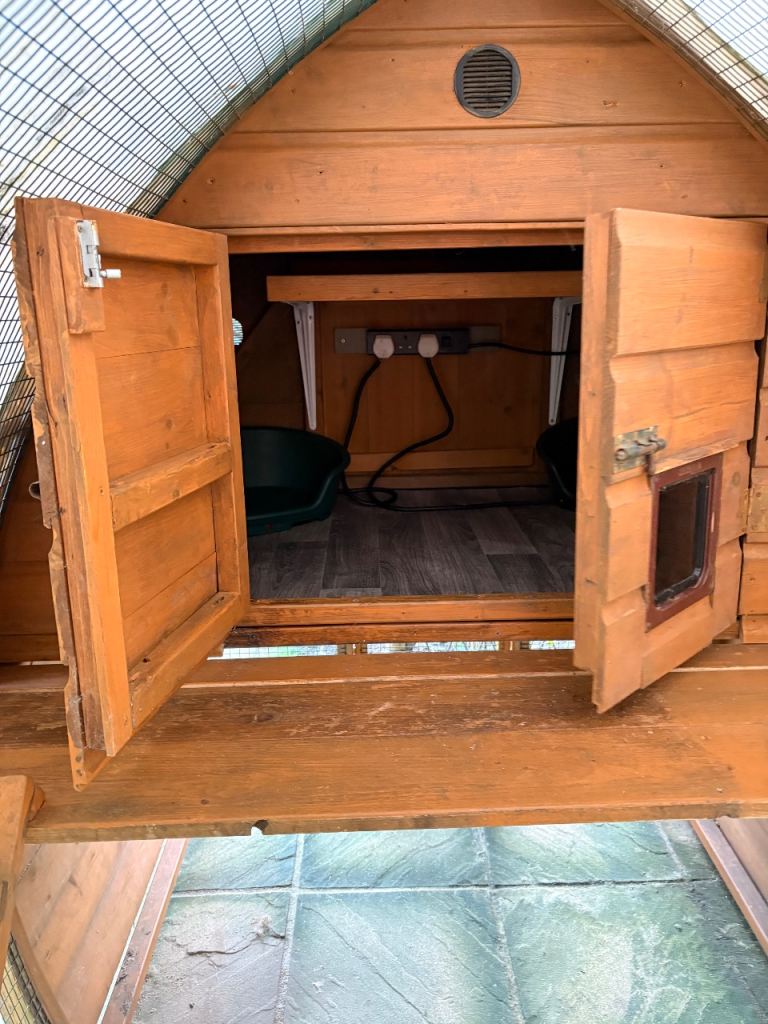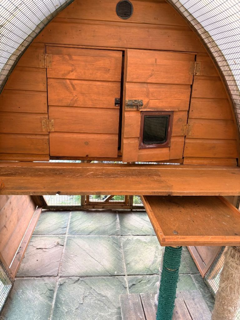 Cat cabin complete with sleeping area, power socket, shelf
