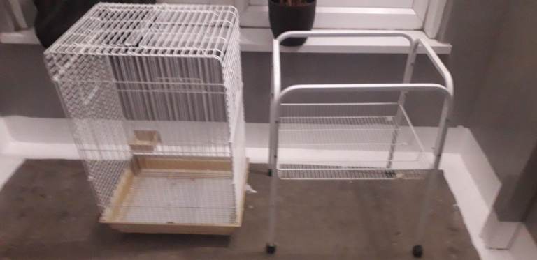 Free bird cage, two part, cage & stand - see pics - some more feeding & water utensils included.