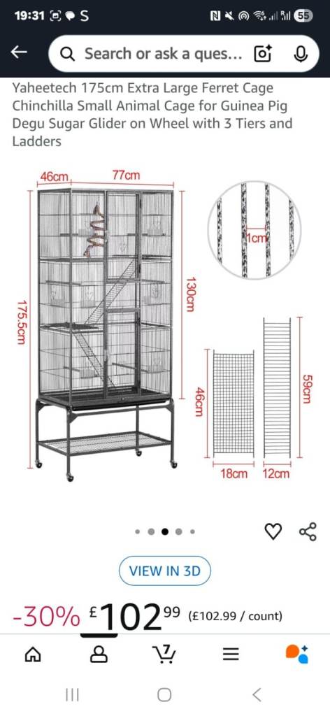 Pet cage, can be used for rats, parrots, gliders etc.. used for a couple of weeks but immaculate condition.