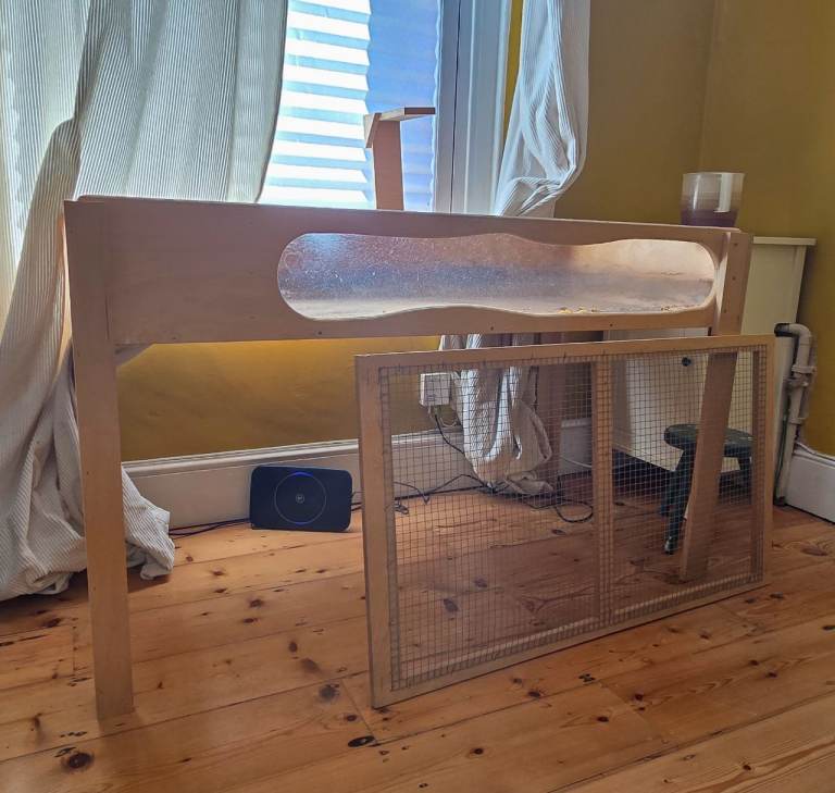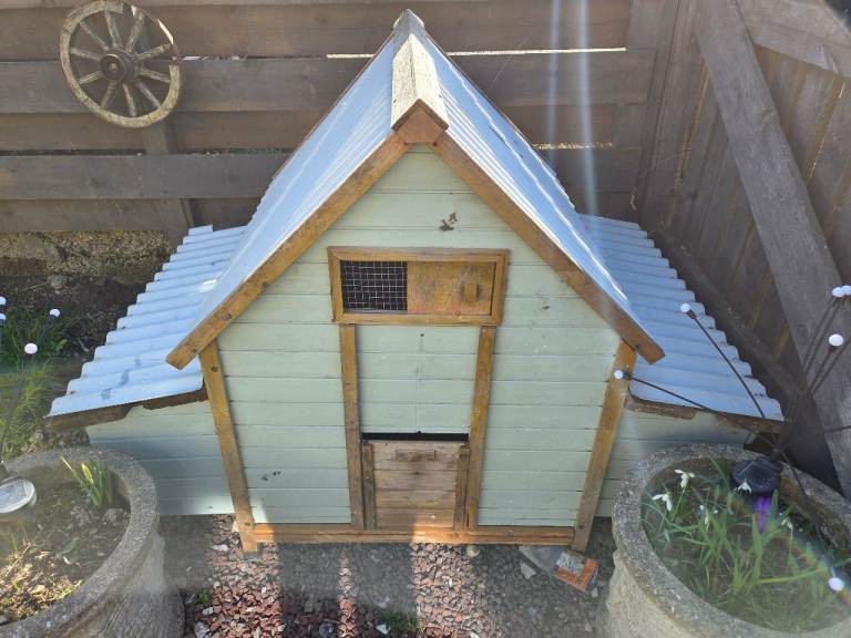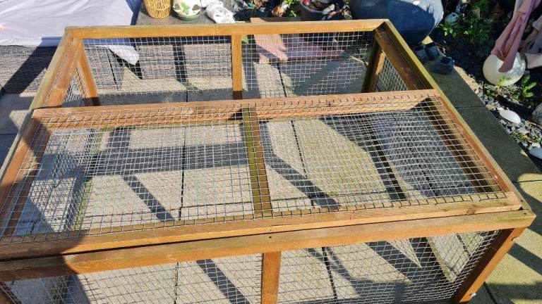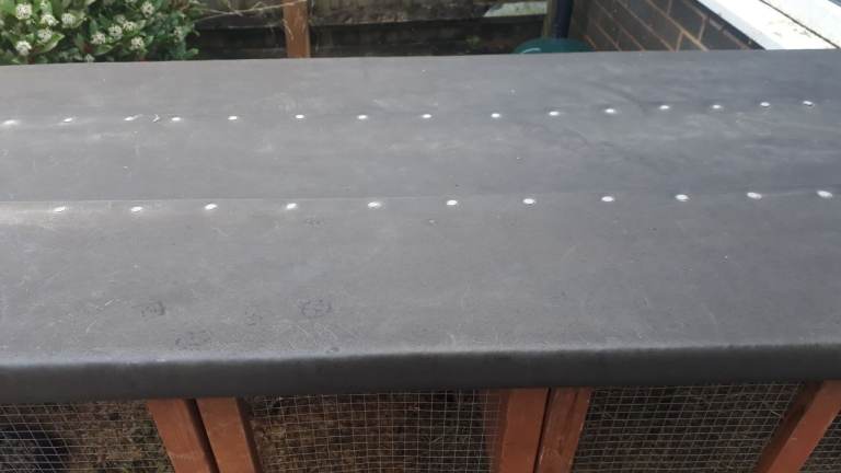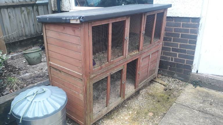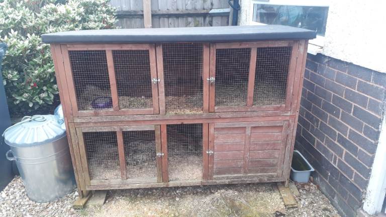 Large double hutch, bought new 2 years ago. Would suit up to 3 guinea pigs but ideally 2. Roof replaced 5 months ago, completely waterproof. Ramp between upstairs and downstairs, feeding bowl and water bottle included if desired. Collection only; a trailer, van or estate car would be ideal.