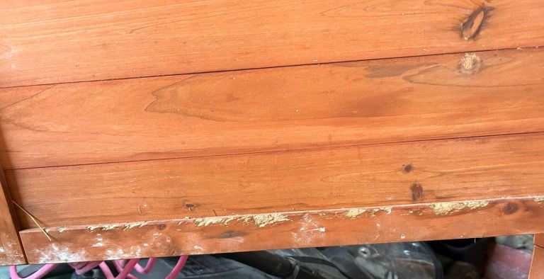 Slight gnawing marks inside a door