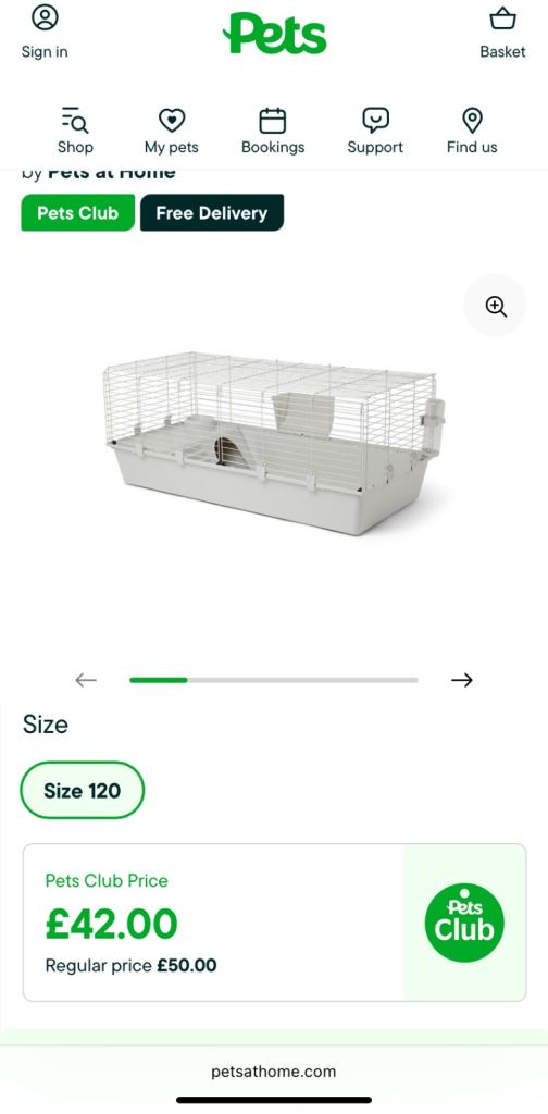 Only a week old, bought to nurse a sick rabbit that has now passed. As new, comes with rabbit food and a small bag of Timothy hay. Full details on pets at home website - bought for £42