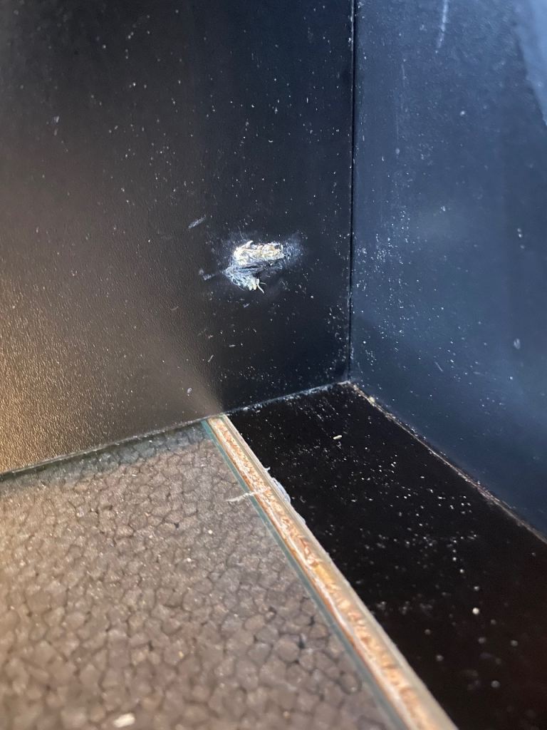 Small mark has been left where the wirse were secured in place. Photo has been provided.