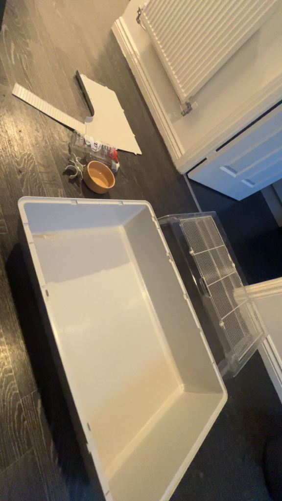 it’s very good for a Syrian hamster got a second floor comes with a food bowl and two water bottles one small and one big one it’s in good condition
