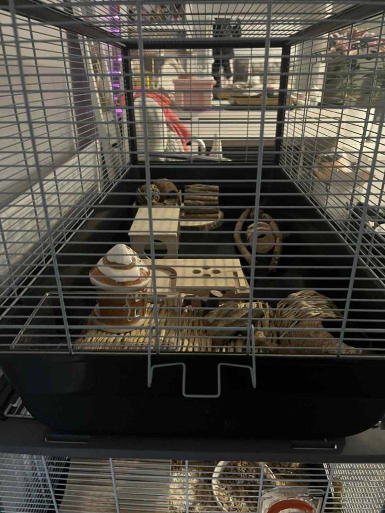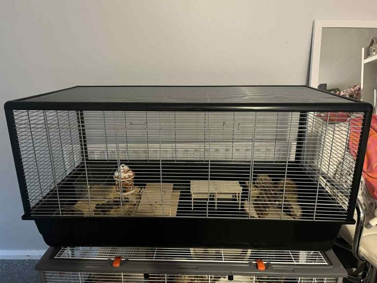 Hamster cage in good condition. Does have a corner piece missing but doesn't effect the cage at all. The cage is 100x50 cm. Also comes with whats in it