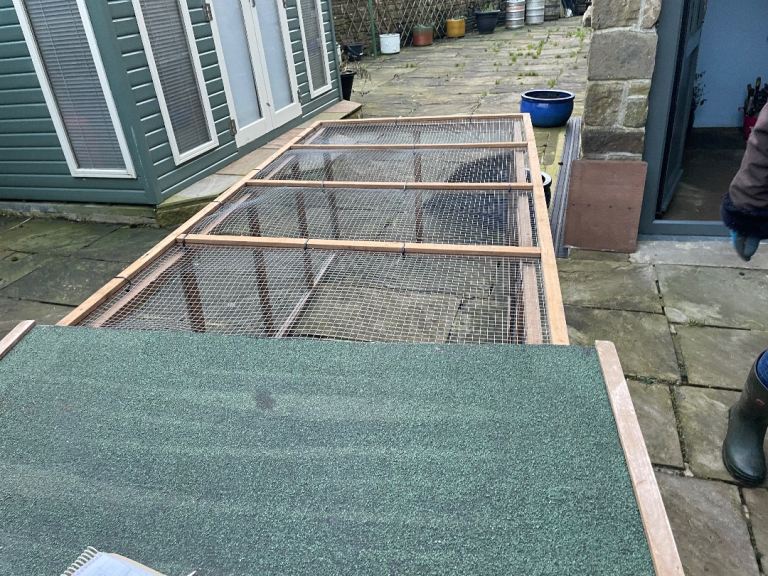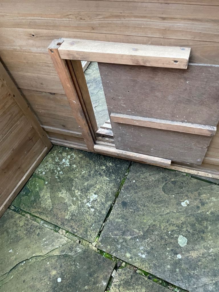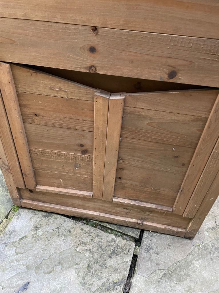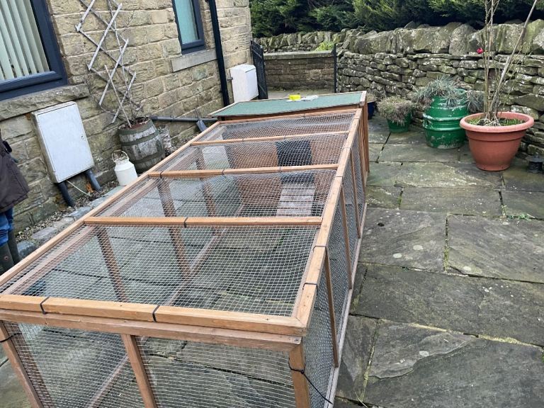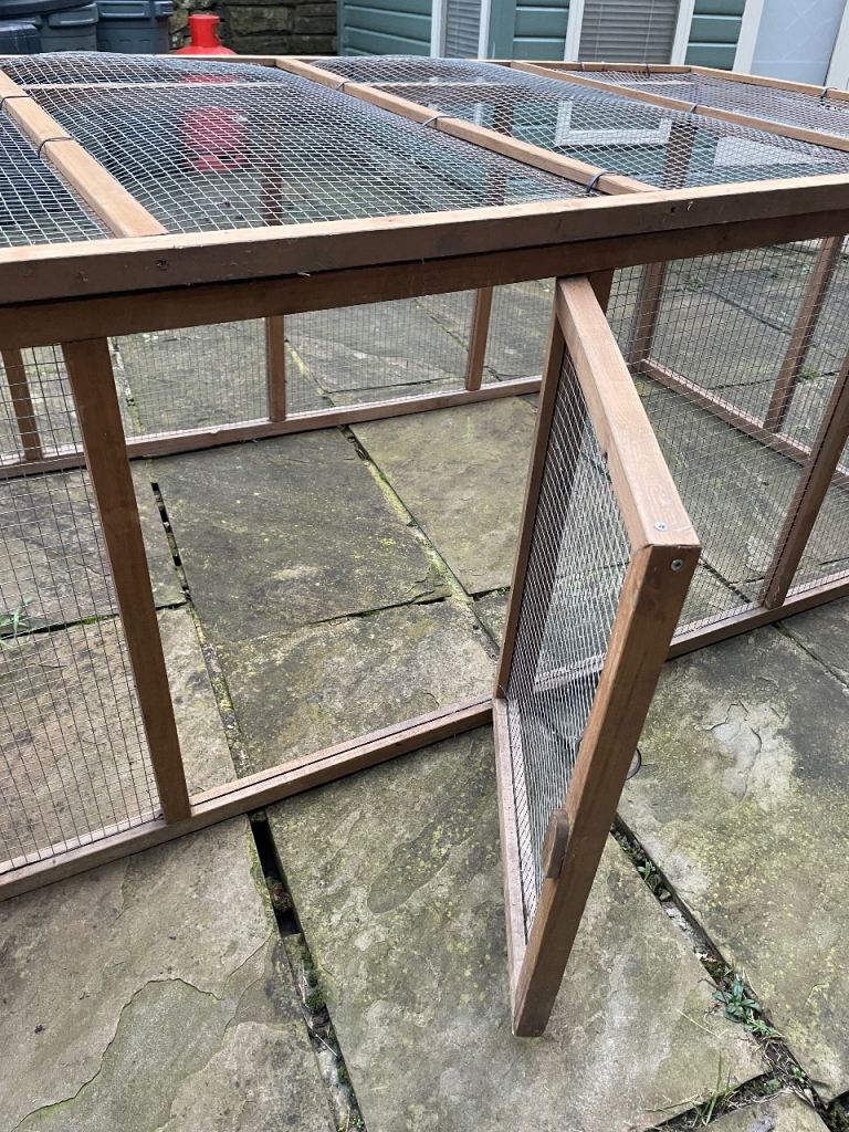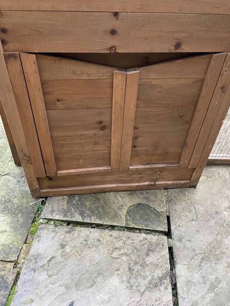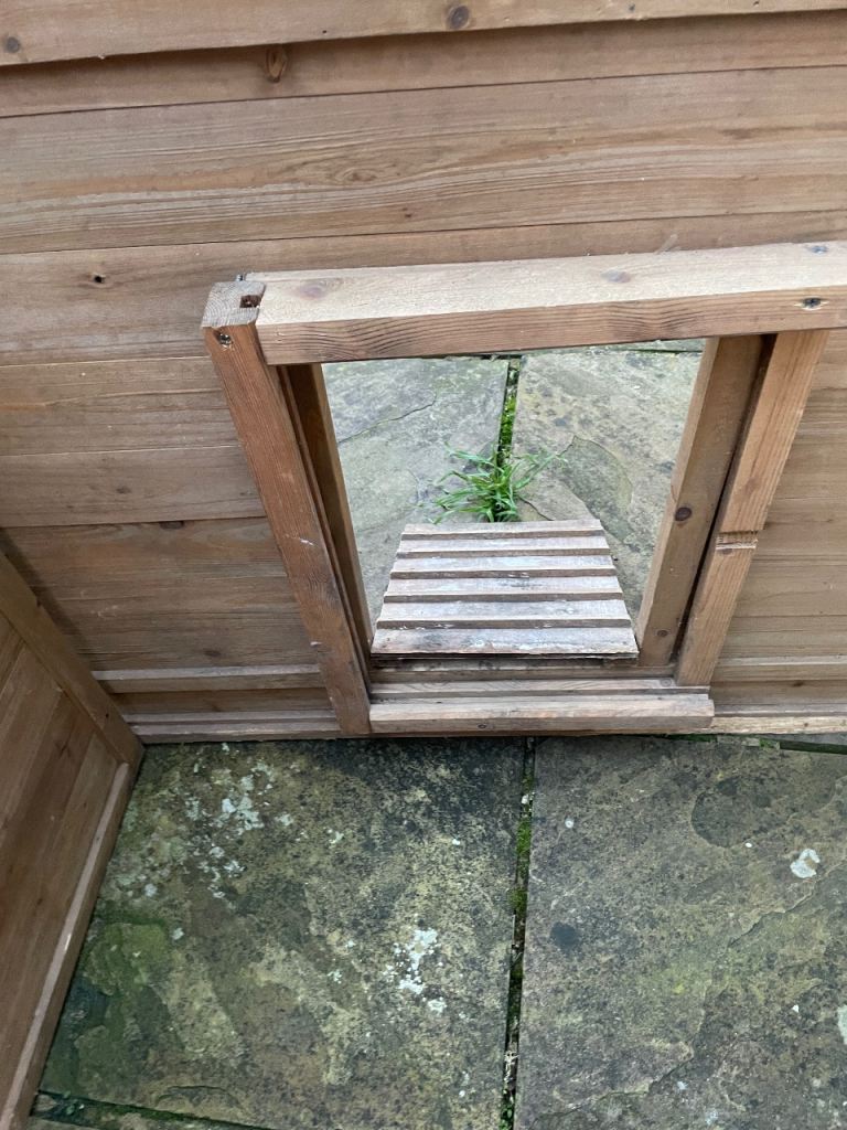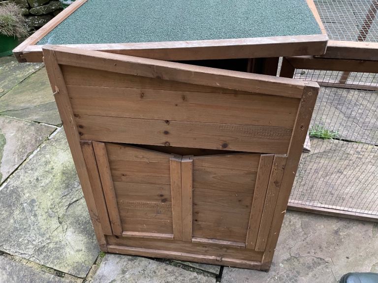 Hi for sale one used hen hut with covered run it’s in good condition not much use we raised some chicks in it been in dry storage for a while has ramp sliding shutter side door for cleaning etc and raised floor sizes are hutch 27” H x 27” D x 42” W run is 27” H x 39 1/2 W x 77”L and all screws together thank for looking 👍🐥