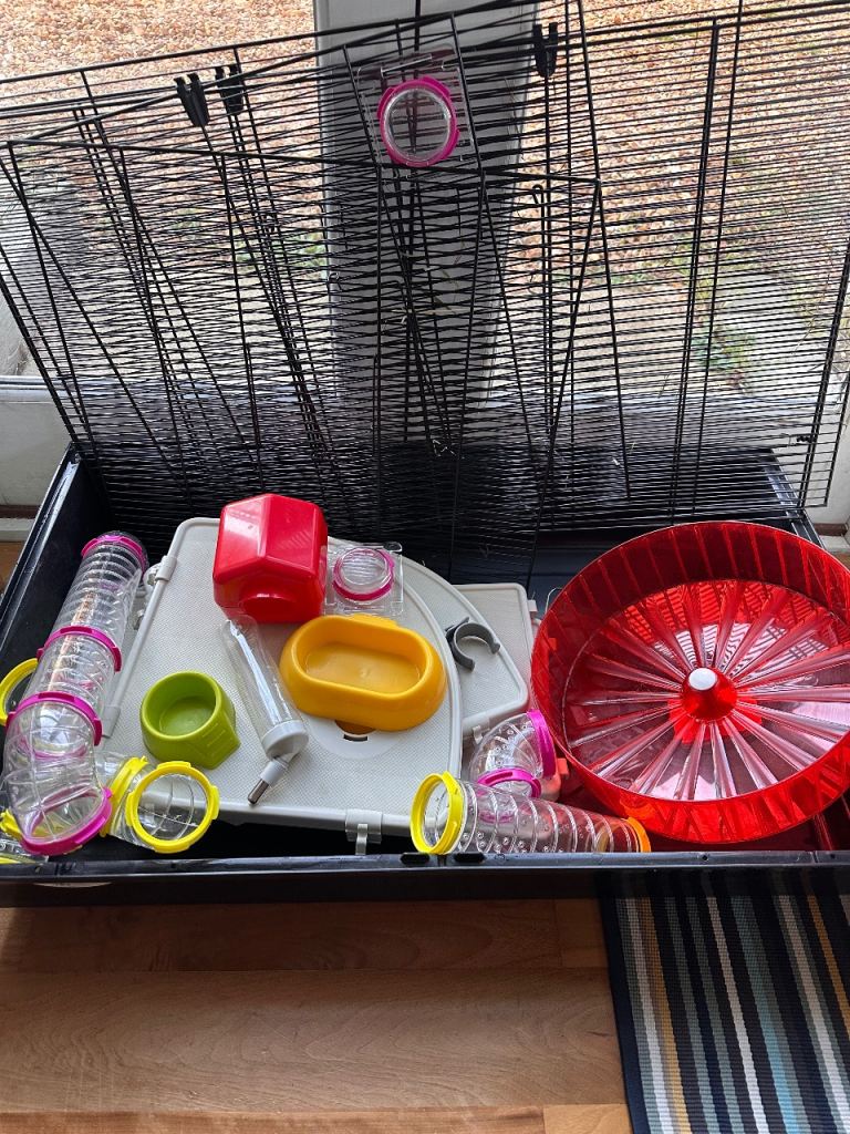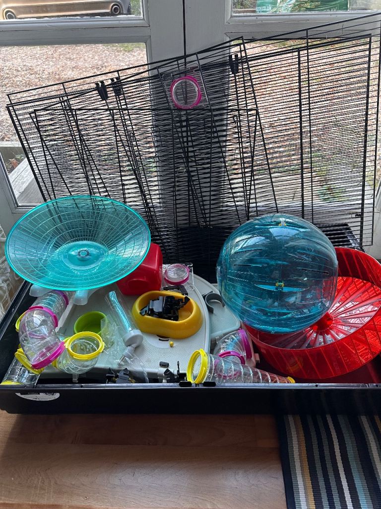HUGE ferplast hamster cage - photo added for reference. In great condition with all original accessories plus an extra, large, silent free standing wheel, and large hamster ball. RRP £130 - listed at £100 but open to offers