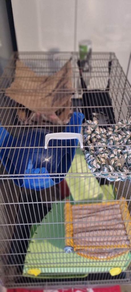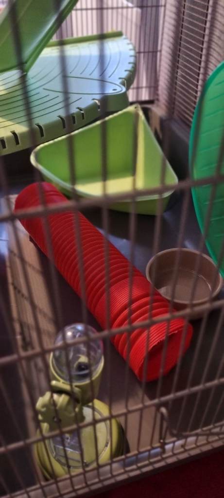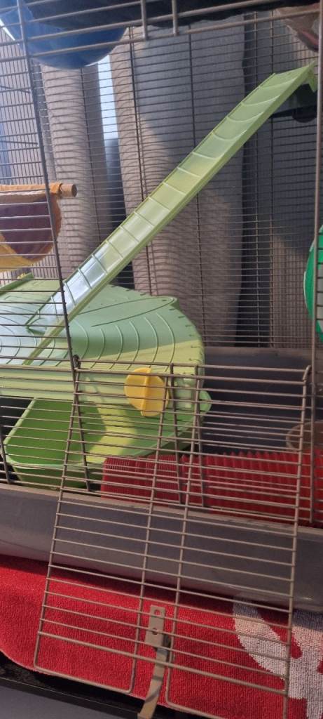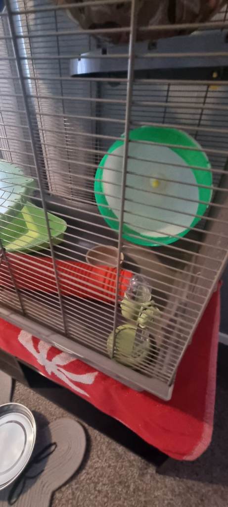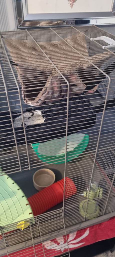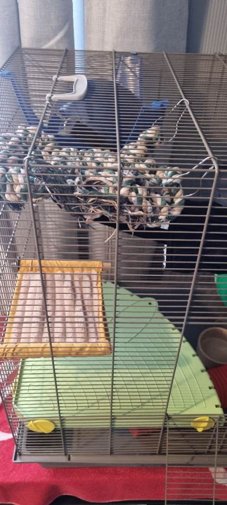 Large cage, full set up, used for housing 2 rats. ( can also house Birds, Chinchillas ect ) Comes with duplicate of everything ( hammocks a bit tatty and chewed) but will start you off. Unopened food & treats, 2 water bottles, toilet, 2 extendable tubes, replacement shelves and ladder, large exercise wheel, blankets and puzzle toy. Currently retails for £110 from pets at home. One of the handles at the top has broken off but doesn't affect it in anyway. All been washed & cleaned out but has now been in a shed for a few months so would need to be cleaned and fabrics washed again. Collection only from Hindley Wigan, No delivery.
