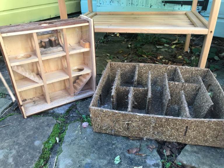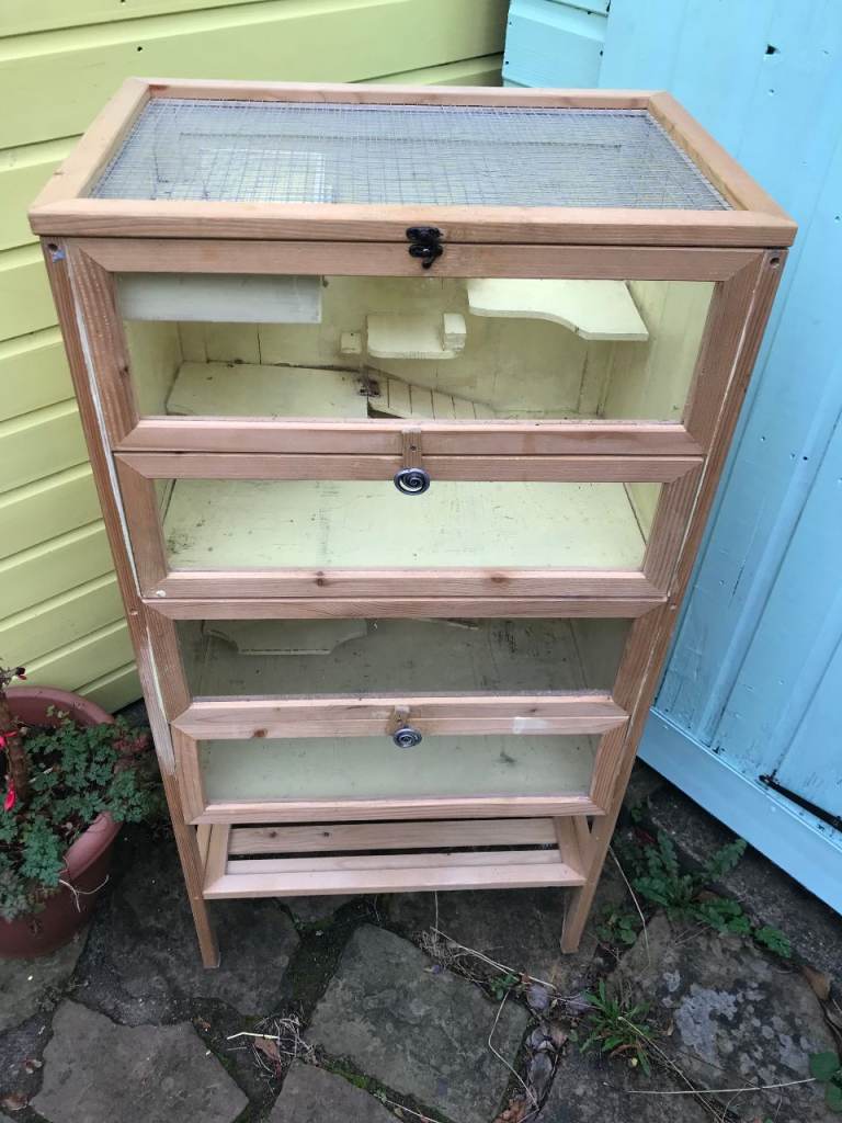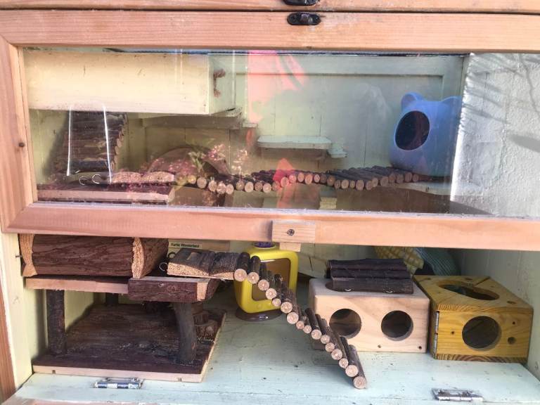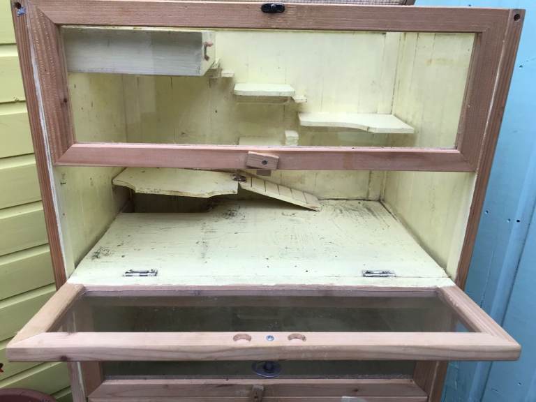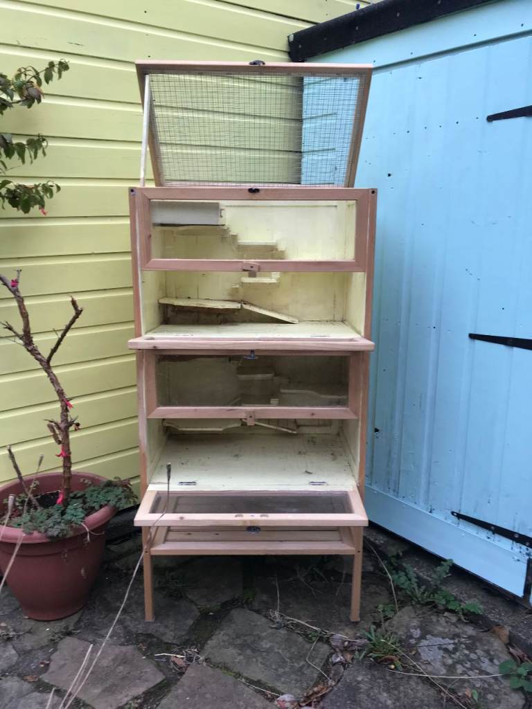 This deluxe hamster cage, which at 120cm high (150 with the lid open), 60cm wide and 40cm deep, is perfect for dwarf hamsters or a Syrian. It's spread over multiple levels, some of which have been added to help dwarf hamsters navigate it, and comes with most of the things you will need to keep hamsters happy, healthy and entertained: 7 ramps, 3 wheels, 3 houses, a sand bath, 5 additional toys, a large maze, a large activity house, and two balls so that you can let your hamsters run around on the floor. Collection available from L18.