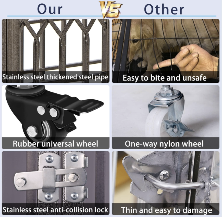 【Heavy Duty&Nontoxic】Our strong dog crates are made out of well welded steel bar. Sturdy metal frame prevent even the most aggressive canines from escaping. And non-toxic finished surface protect your pet’s health while it licks or chews the metal frame.