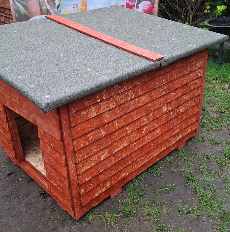 New dog kennel. 3ft high. 3ft wide. 4ft long. With off ground floor. With felted roof. Dismantled ready for collection. Can deliver local.
