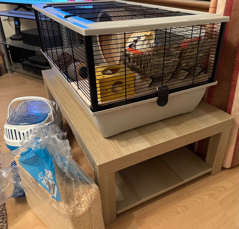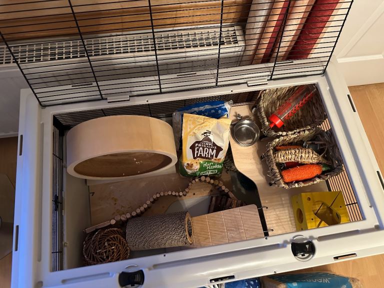 Also included travel carrier, wooden wheel, accessories, bedding and food.