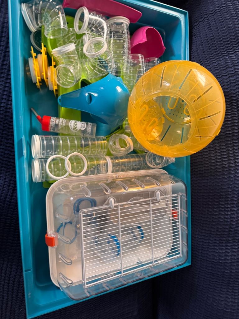 We had the small cage set up on top of large one. Called it the penthouse 🤣 filled with bedding and made an excellent place for burrowing. Huge collection. No longer required. All cleaned properly.
