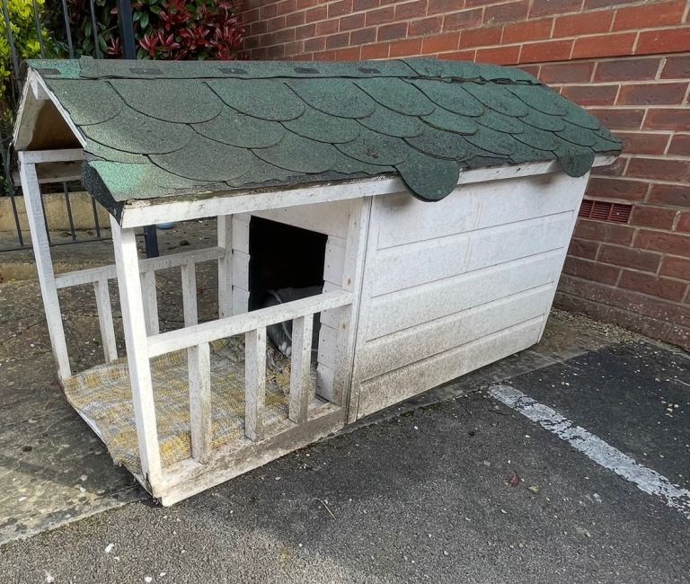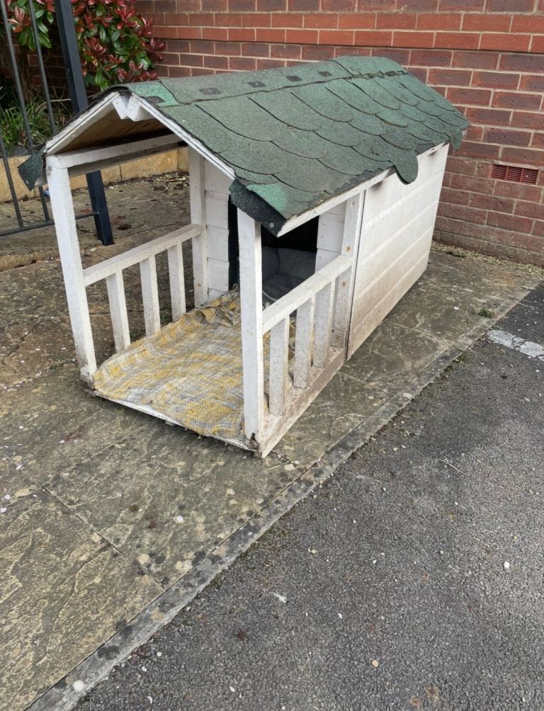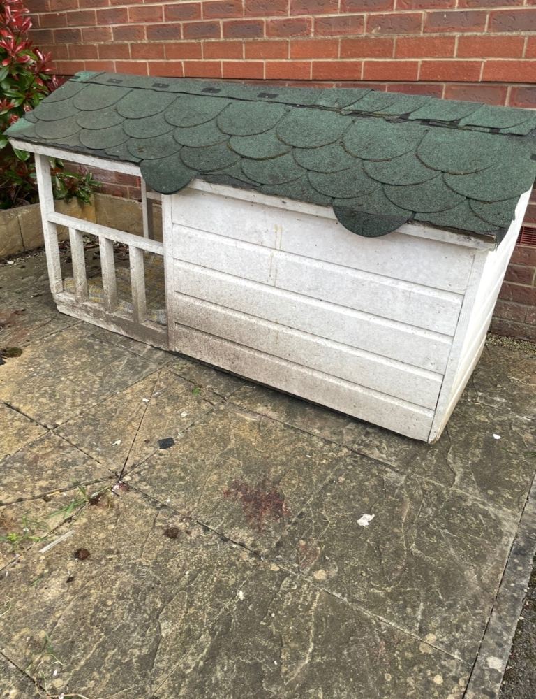 Large wooden kennel, strong and sturdy with plenty of life left. Overall in fair to good condition: one front leg has a visible chip of wood missing but it’s still solid and just needs a bit of touch-up and paint. The rest is just surface dirt from use. It’s quite bulky, so ideally needs a van to collect and will require two people to carry. I’m happy to help load it into your van.